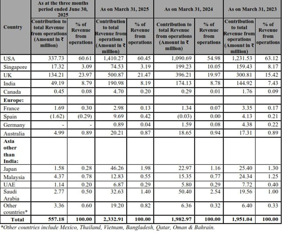 Most of ETL's business comes from outside India – about 91% of its revenue comes from exports, with only 9% from India. They work with 76 major enterprise clients across 19 countries, with the US, UK, Singapore, and India on top, along with Australia, Japan, Saudi Arabia, UAE, and Canada. Their global client list includes giants like Pearson Education, AQA Education, Ascend Learning, and Brigham Young University-Idaho. The US and UK duo make about 85% of the total revenue, with the US at about 60%, which is also a red flag for the company, as too much dependence on two/three institutions globally.