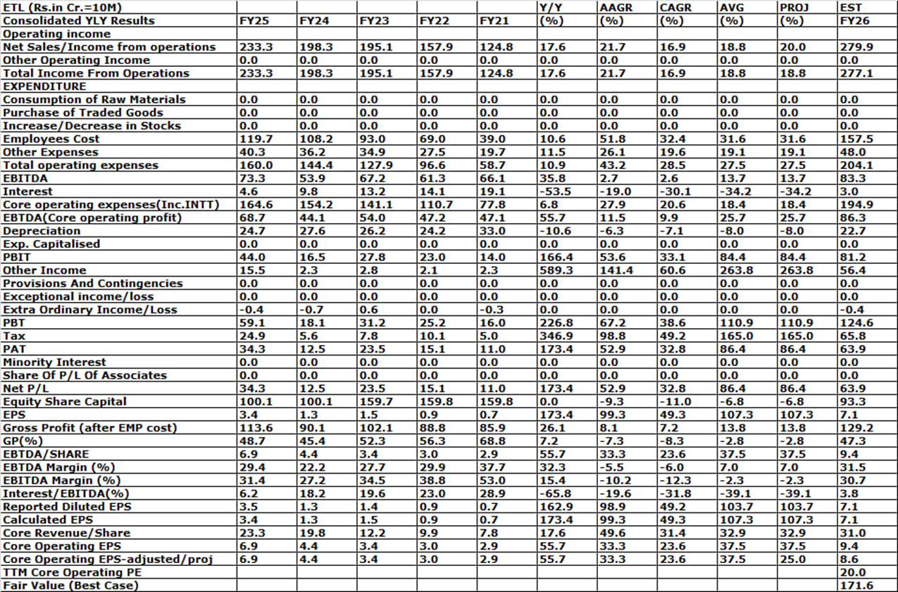 ETL aims to raise ₹180 crore to boost and upgrade its digital and AI infrastructure to ensure it can meet demand and stay ahead. Right now, the promoters hold 94.6% of the company, and even after this IPO, at 59.09% they will continue to have a firm grip on core management – indicating that they are confident about the direction things are going.