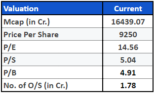 Currently, the stock is trading at a price of ₹9,250 per share, with a market capitalization of ₹16,439 crores. At a PE of 14.56x and PB of 4.91x, while growth is clearly priced, there is scope for appreciation if wealth advisory services and MTF services compound further.
