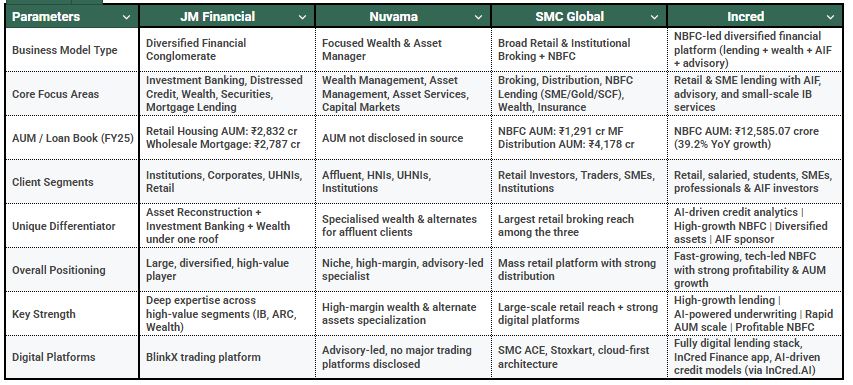 Although JM Financial and Nuvama are larger revenue companies than Incred, Incred is growing faster than either company, as it continues developing its retail and SME loan portfolios. Incred's reported profit after tax of ₹373.15 Crores exceeds SMC's and has a very robust year-on-year growth of 20.7%. This demonstrates that Incred can scale both its AUM and profitability quickly.