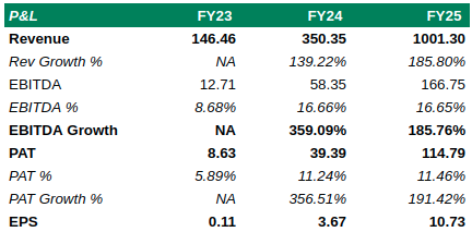 ONIX is positioned for strong expansion as EPC execution, MSKVY 2.0 orders, and upcoming manufacturing capacity drive revenue growth of 40–45% annually through FY30 (including a one-time FY26 spike). PAT margins are expected to improve from ~11% to 13% (base case) with scale benefits.