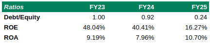 Balance sheet improved significantly, and Debt/Equity has been lowered to 0.24x, and total assets crossed 1,072 Cr.