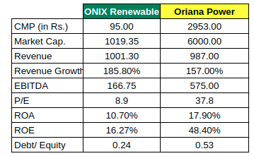 ONIX is unlisted but has much more potential than Oriana. That is because ONIX is growing fast, with a small base and an 8.9× P/E. This is why it is selling fast on the Sharescart unlisted market. If there are no changes in execution, ONIX will soon become India’s next big green energy player.