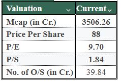 - The valuation metrics for Polymatech and MosChip indicate a stark contrast in the market's outlook for both companies. Polymatech is trading at a P/E of 9.7x and P/S of 1.84x, whereas MosChip is trading at P/E of 82.2x and P/S of 6.48x. The large discrepancy in the price/earnings ratios indicates that the market is giving MosChip a premium over its earnings, about the sustainable nature of low-capital-intensive service-based companies, while the capital-intensive manufacturing operations of Polymatech place a high level of risk on their operations and make them very susceptible to cyclical fluctuations.