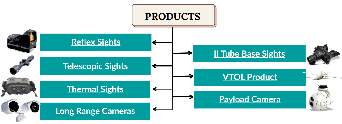 The product portfolio that they have diversified in, includes reflex sights, telescopic sights, thermal imaging sights, night-vision (II-tube) sights, long-range surveillance cameras, VTOL and drone payload cameras - providing infantry, surveillance units, border security forces, and UAV/drones with the latest optics and imaging solutions.