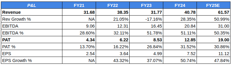 With the most conservative assumptions, RRP S4E exhibits strong multi-year growth due to increasing use of thermal sights, surveillance optics and drone-mounted EO payloads. It boasts good margins, low debt, and has an executable order book of ₹120 Cr which is reflecting to make the company a high-visibility defence-tech compounder by FY30.